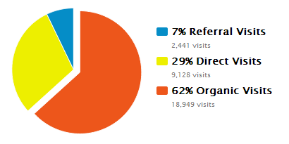 Here’s a snapshot from last month for a client who is working on a content marketing based online marketing campaign with us, and as you can see well over 60% of their site traffic is coming from search engines. This is because we’ve properly researched and optimized every piece of content they produce to make sure it drives organic traffic to their site.